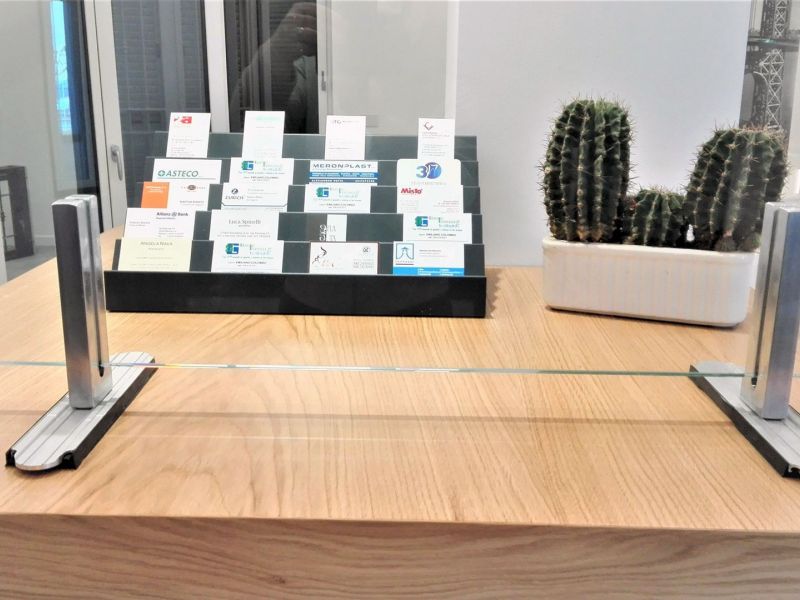 Dotati di supporti in alluminio satinato su gomma antiscivolo, sono ideali per scrivanie, banconi di studi medici, uffici pubblici, comuni e per tutte le attività di vendita al pubblico.